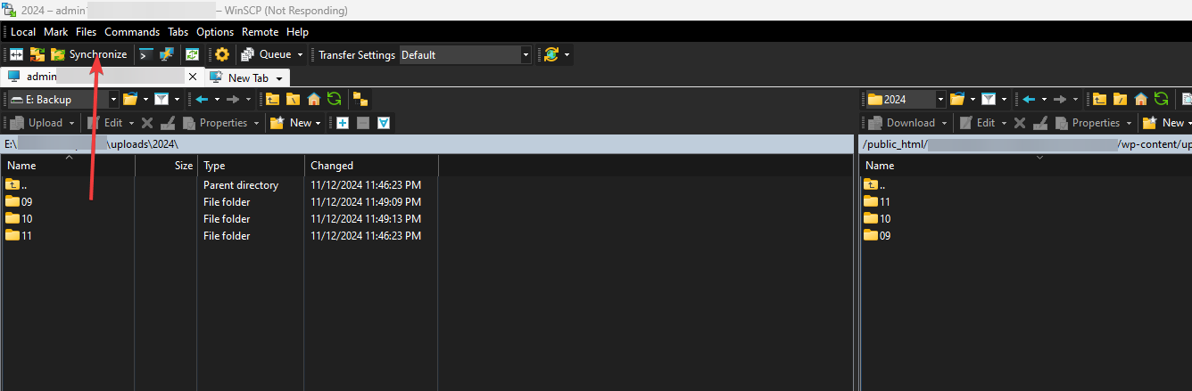 Synchronize WinSCP unresponsible and dead