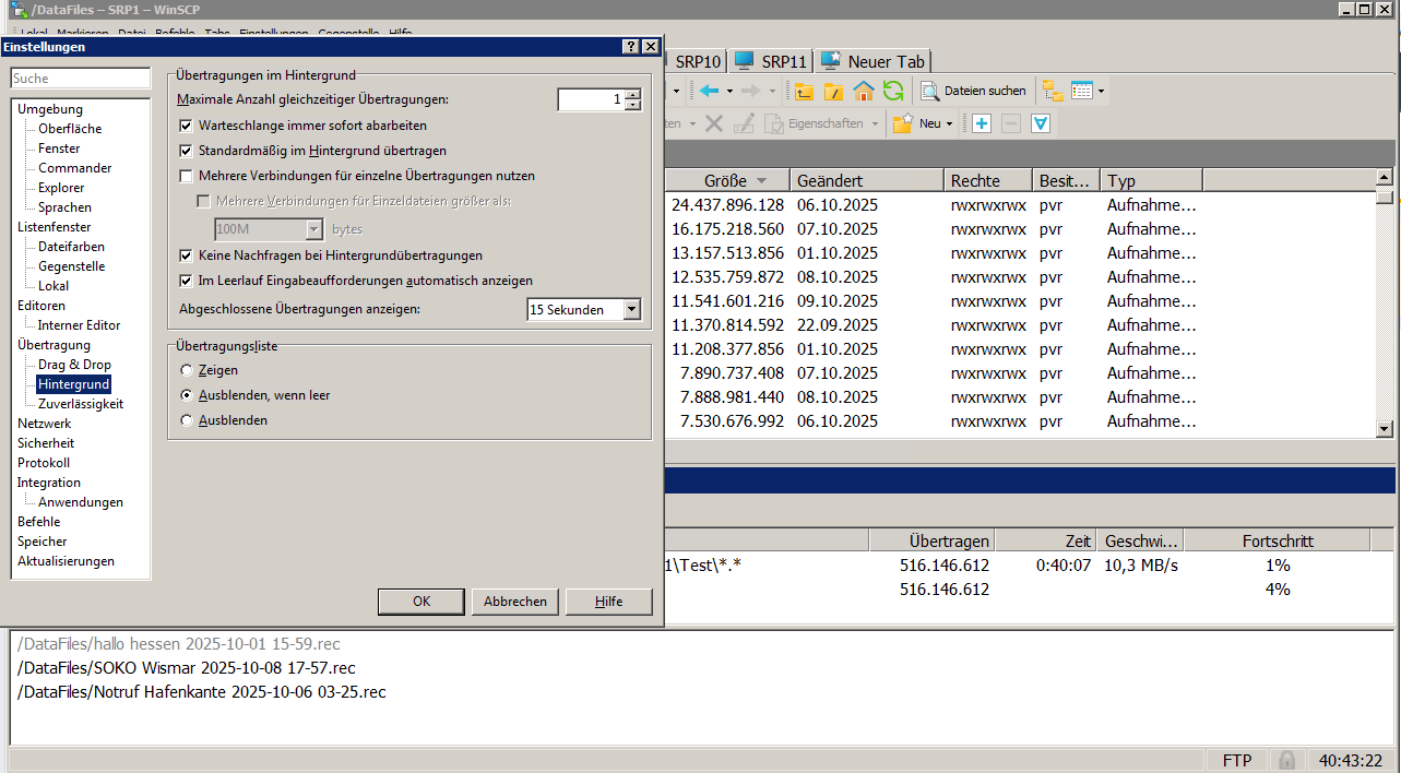 On the other hand, the background transfer queue places all pending transfers in their own pane at the bottom of the WinSCP window. All pending transfers in this queue are always visible. This queue can process one or multiple uploads/downloads at once, depending on the value you choose in Preferences.