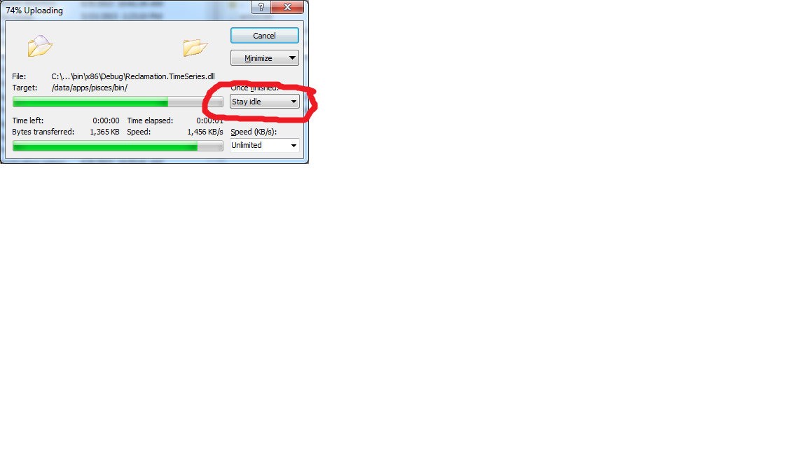 Deleting a large directory, changed drop down in 'working prompt' from 'stay idle' to 'disconnect'