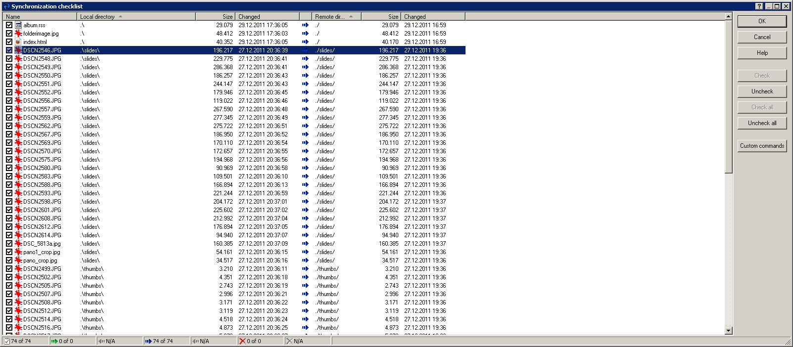 When I synchronize a directory more than once, differences show up which are not correct. For example a difference is shown on a file with local timestamp "27.12.2011 20:36:39" and remote timestamp "27.12.2011 20:36". (Note the missing part for seconds in the remote timestamp, maybe that's somehow related to the issue). File size is the same on both sides.