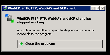 winscp:sftp,ftp and scp client has stop working
