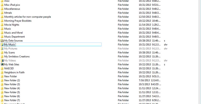 The My Music, My Pictures, and My Videos folders all show shr for the attributes. They only show like this inside WinSCP. The shr attributes are not set if I run attrib from the command line.