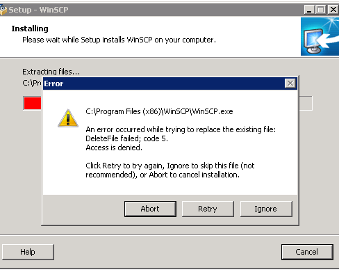 Below is the error message I am receiving when trying to upgrade from 5.5.0 to 5.5.3 for WinSCP