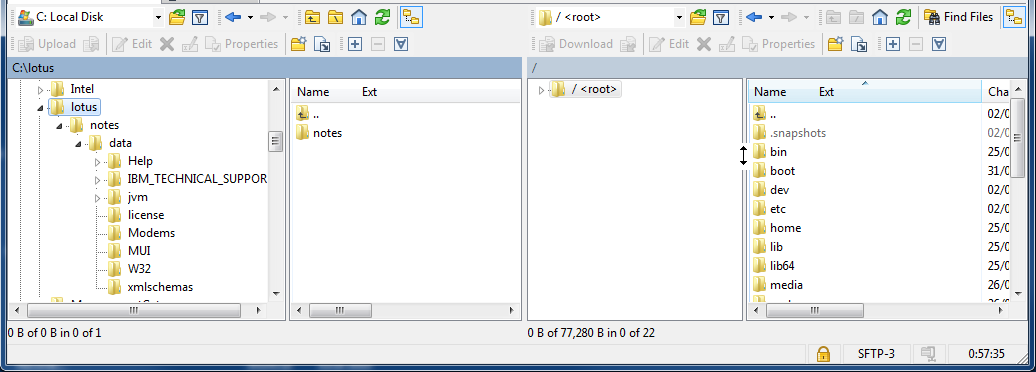 (3) In the remote panel, show the directory tree (Ctrl+Alt+T). Move the mouse pointer over the divider between the remote directory tree panel and remote files panel. A horizontal resize cursor should be displayed, not a vertical resize cursor.