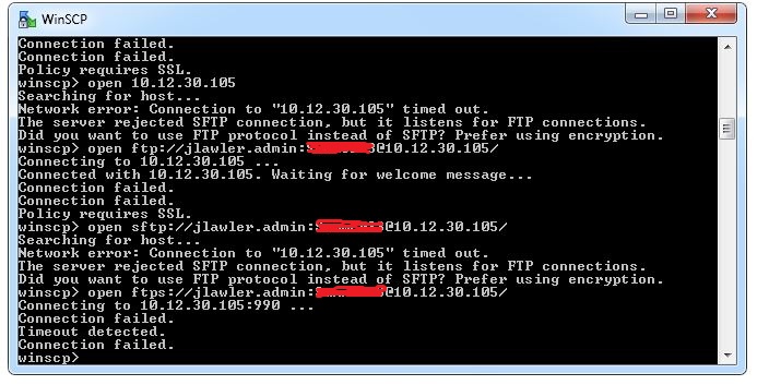 I'm using WinSCP for the first time and getting started with scripting an upload process that I need to put in place. Basically I can connect fine using the WinSCP client. Please see attachment img1 with a screenshot of the settings. However I'm not able to translate these settings into a console command. See im2 for the errors I'm getting.