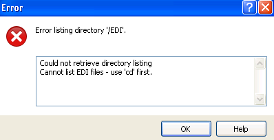 We're trying to use your program to connect to an IBM Info Exchange FTP using TSL. We are able to connect, but when we do so with the directory that we need to use, we get the error message in the screenshot.