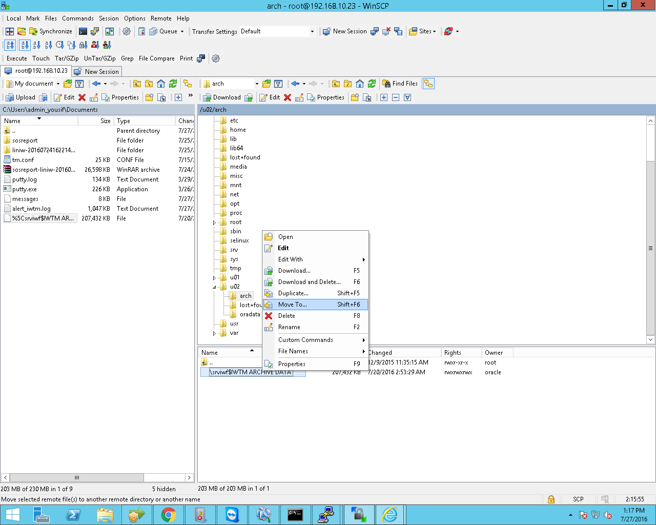 I was trying to move offline oracle tablespaces from Linux VM server to a hard disk connected to the VM server using the 'Move to' option. I gave the Target remote path as well (please find attached).