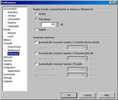I'm looking at whether or not I can set the Endurance Preference so that the 3 "Automatic reconnect" boxes are unchecked on installation of WinSCP. This is for a custom installation.