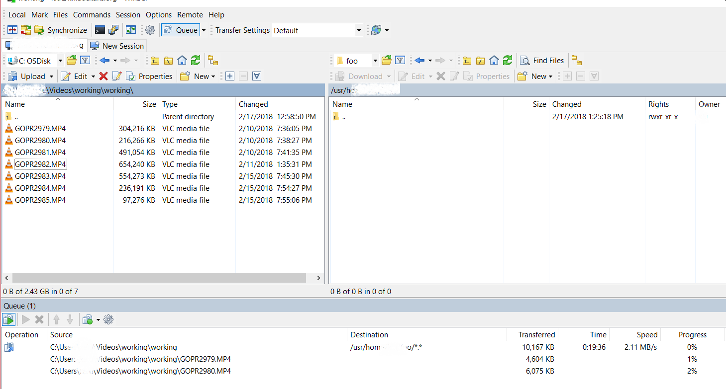 WinSCP doesn't show waiting & completed files in queue