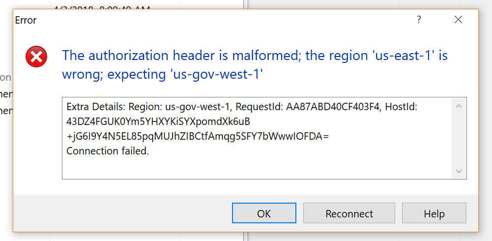I have tried multiple options but it keeps giving me the error. I need to connect to us-west-2 region with initial bucket. It keeps giving me the bucket issue.