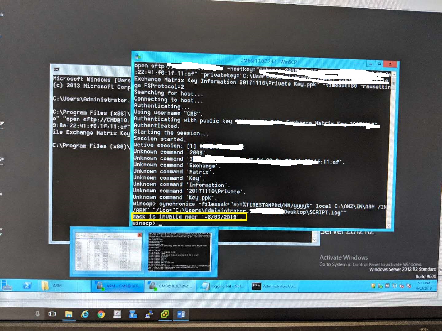 Currently, I'd like to transfer file from remote server (sftp) to local virtual machine. The filename is like 'E3190130_124201372' and '190130' means the date of 2019-01-30. The aim is to download all files from last day of last month to last day of current month. local virtual machine connects to remote server via private and public key.Winscp version is 5.13.I haven't use winscp scripting before and I'd like to know if it is possible to implement this. Thank you.
