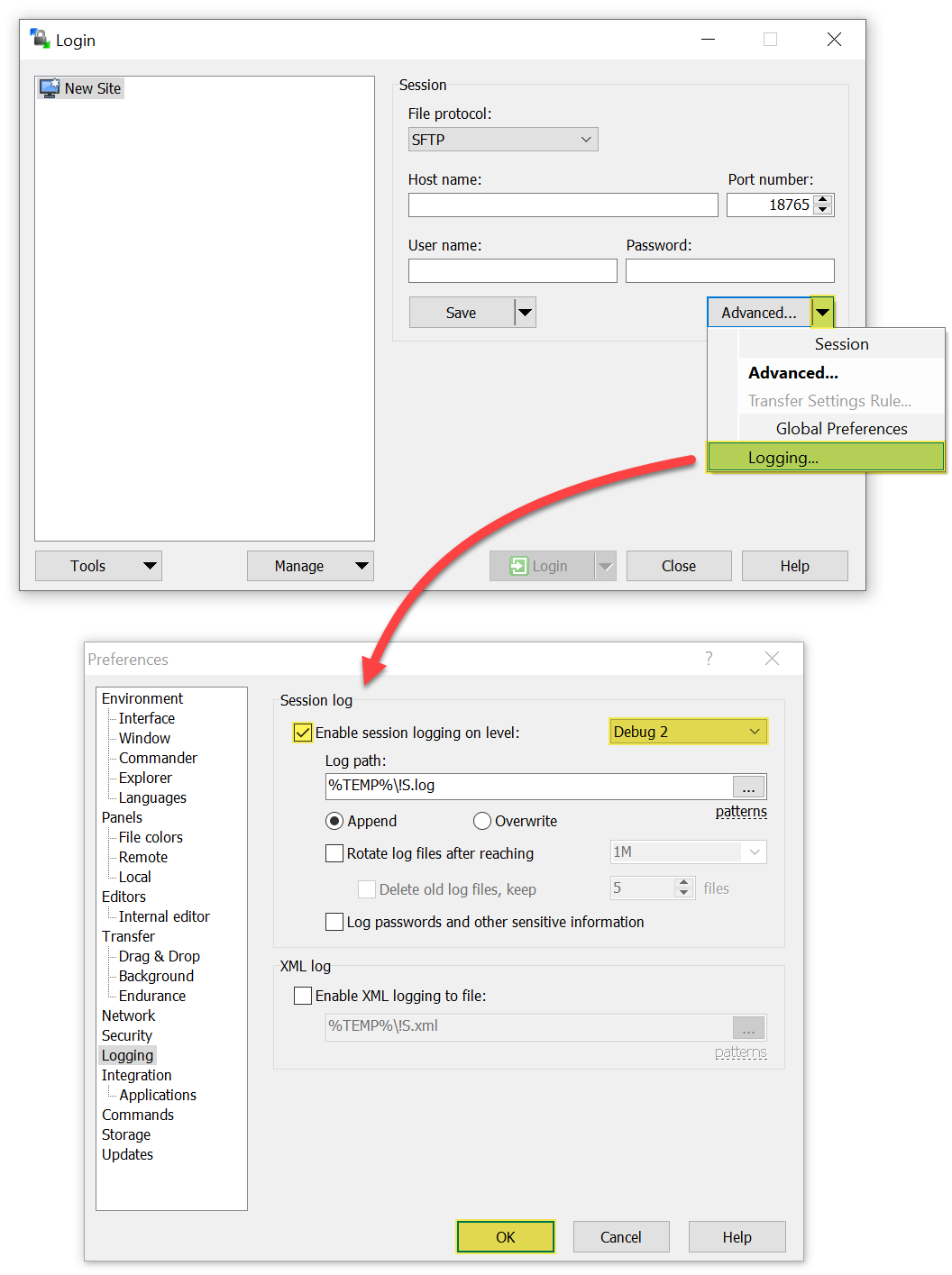 I tried to change the WinSCP configuration storage from Windows Registry, Automatic INI, and custom location in file but the problem persists.