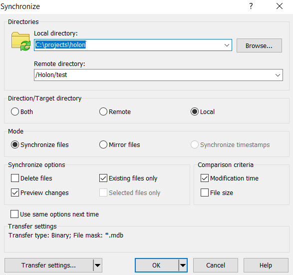 TransferOptions, set TransferOptions.FileMask and pass the TransferOptions object to options argument of Session.SynchronizeDirectories method.