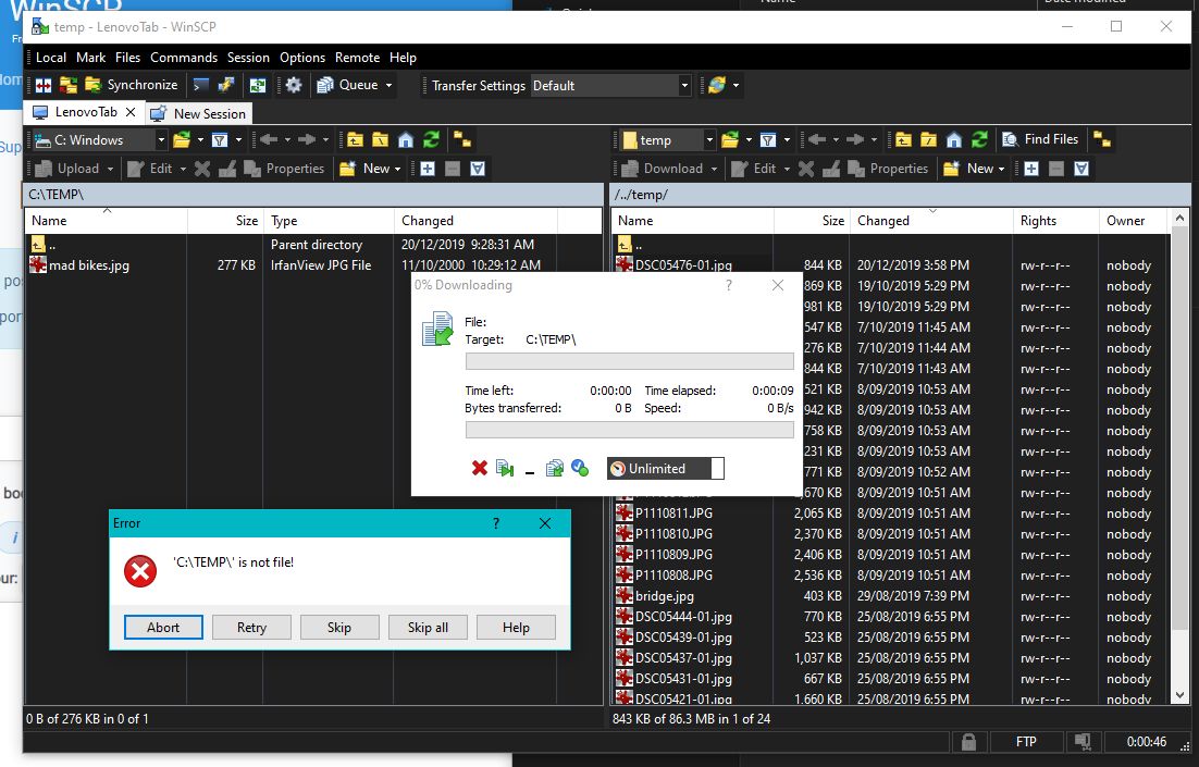 transfer fails although connection succeeds
