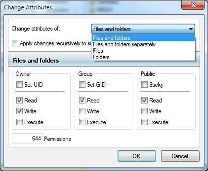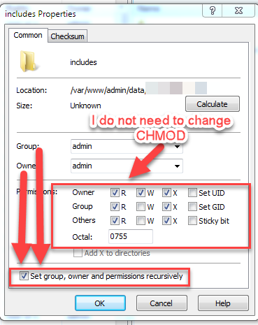 Change "Owner", "Group" for recursively.