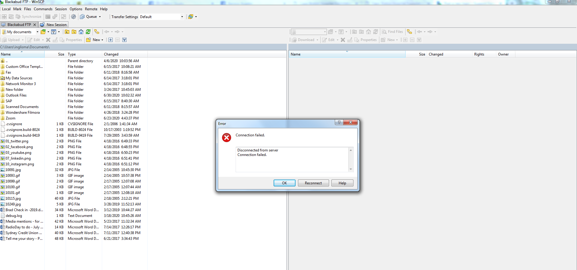 To generate the session log file, enable logging, log in to your server and do the operation and only the operation that causes the error. Submit the log with your post as an attachment. Note that passwords and passphrases not stored in the log. You may want to remove other data you consider sensitive though, such as host names, IP addresses, account names or file names (unless they are relevant to the problem). If you do not want to post the log publicly, you can mark the attachment as private.