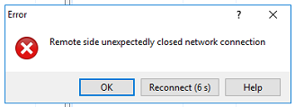 I have searched both of these around online, but cannot find any additional information. Please let me know if you have run into this before or if you know how to resolve.2020-11-23 13:43:55.084 Remote side unexpectedly closed network connection