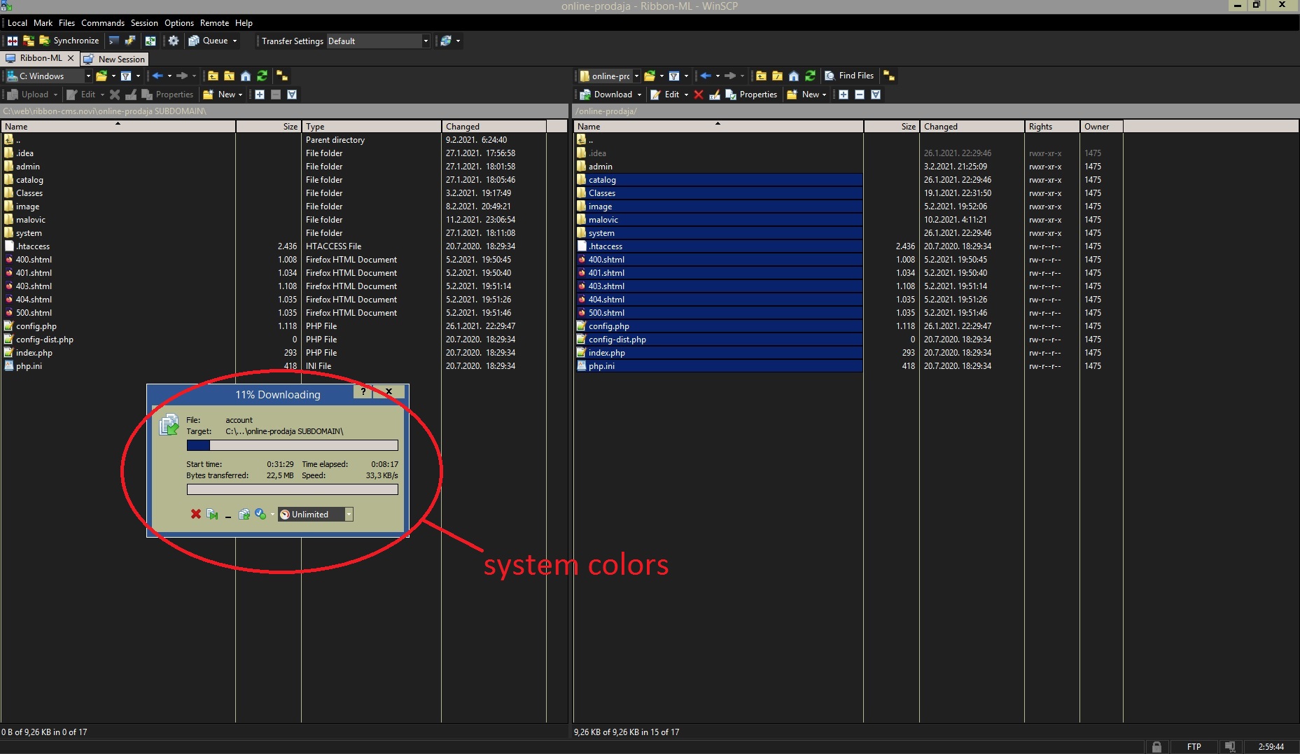 How did you change the "system colors"? What version of Windows is that? Do you have dark theme enabled in Windows or in WinSCP?a screenshot is attached (regarding the colors issue). i can change the lower panels color but the rest of the screen remains black. and all reverts to black on program restart (tried running as admin, nothing improves).