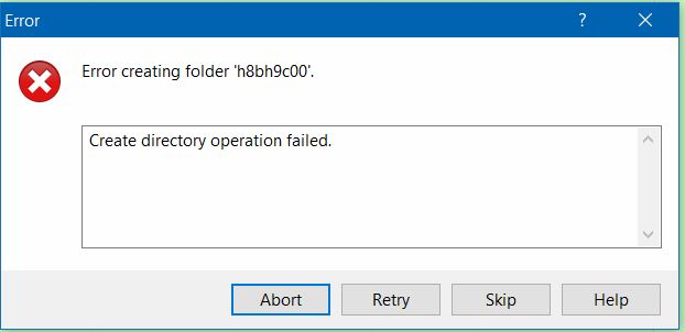 "Create directory operation failed."