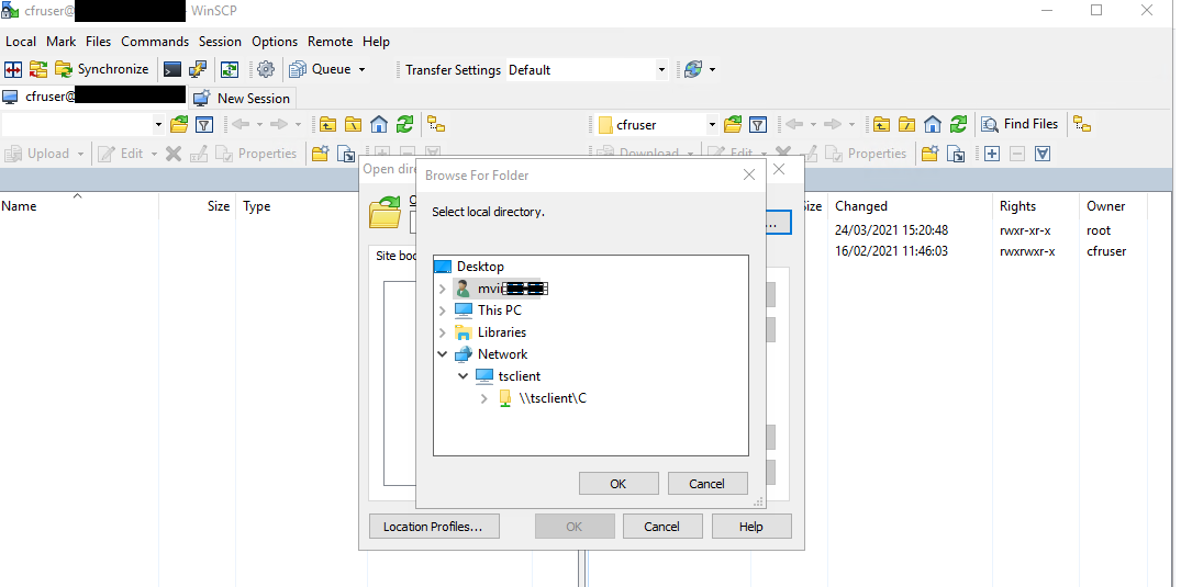 When I connect using the PSM-WinSCP connector on CyberArk, the local disks of the user workstation are not displayed all the time (it works randomly).