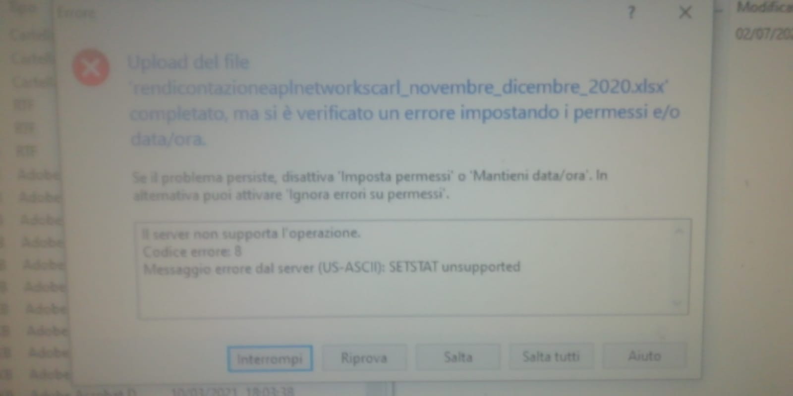 errore impostando i permessi e data e ora