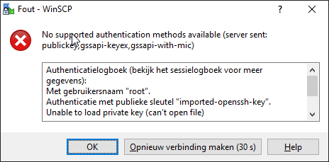 Error when using WinSCP with privatekey (when WinSCP is set to Dutch)