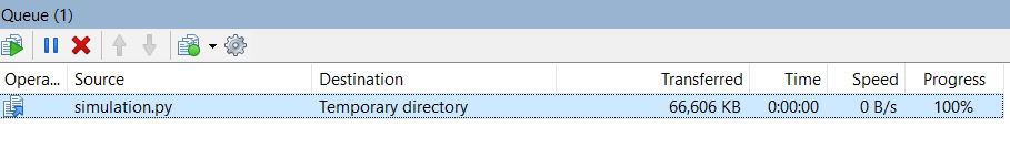 The File transfer was taking too much time, so I realised there was a problem. You can see how the queue looks in my WinSCP, in the attached file.