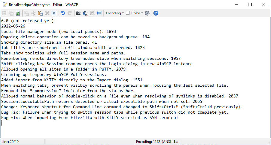 WinSCP 5.20.4.RC and it is the same in 5.19.6.
