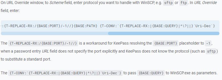 cmd://"{ENV_PROGRAMFILES_X86}\WinSCP\WinSCP.exe" {BASE:SCM}://{USERNAME}:{PASSWORD}@{BASE:HOST}:{T-REPLACE-RX:/{BASE:PORT}/-1//}{BASE:PATH} {T-CONV:`{T-REPLACE-RX:|{BASE:QUERY}|^\?||}`Uri-Dec`}
