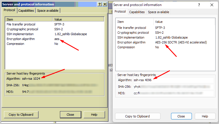 Same SFTP server returning different host key fingerprints