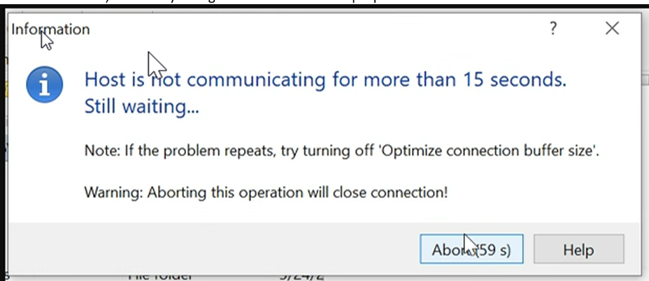 Note: If the problem repeats, try turning off 'Optimize connection buffer size'