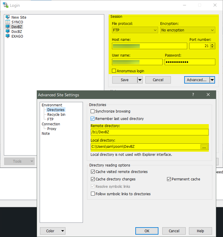 Please, can you add* the LOCAL and REMOTE directories in the Session area of the Login/Site manager window?