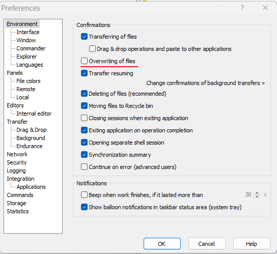 Replace already existing file – disabled notification by mistake. Cannot find where to enable