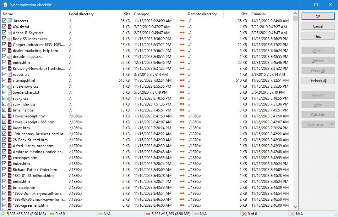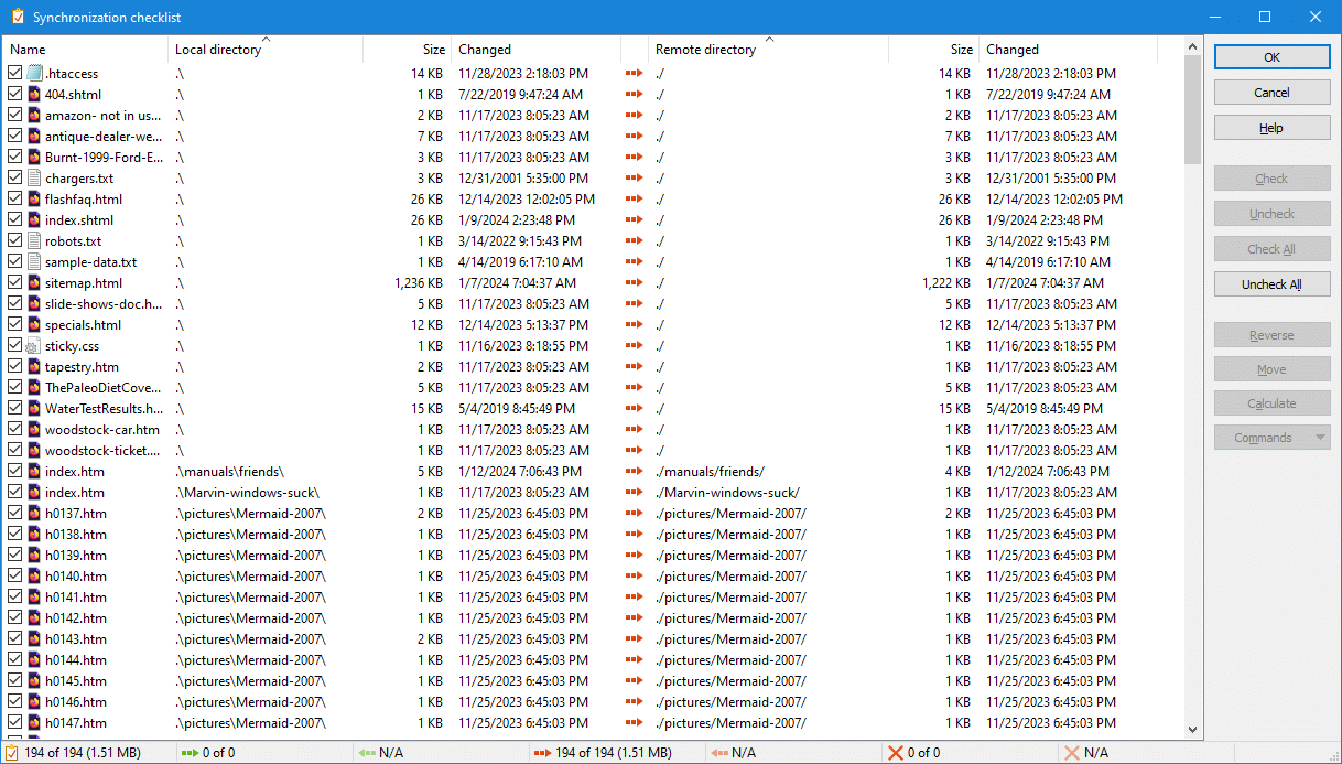 . 2024-01-18 17:16:58.808 Collecting synchronization list for local directory 'C:\Internet\WEBPAGES\518first.com\manuals\house' and remote directory '/home/dh_kpgjxc/518first.com/manuals/house', mode = Remote, params = 0x443 (Delete, NoConfirmation, *PreviewChanges, BySize), file mask = '' . 2024-01-18 17:16:58.830 Local file 'C:\Internet\WEBPAGES\518first.com\manuals\house\.' [2024-01-17T16:58:54.115Z] [0] excluded from synchronization . 2024-01-18 17:16:58.830 Local file 'C:\Internet\WEBPAGES\518first.com\manuals\house\..' [2024-01-17T16:58:54.115Z] [0] excluded from synchronization . 2024-01-18 17:16:58.835 Local file 'C:\Internet\WEBPAGES\518first.com\manuals\house\index.htm' [2024-01-17T17:01:59.679Z] [60620] included to synchronization . 2024-01-18 17:16:58.840 Listing directory "/home/dh_kpgjxc/518first.com/manuals/house". > 2024-01-18 17:16:58.840 Type: SSH_FXP_OPENDIR, Size: 51, Number: 291737867 < 2024-01-18 17:16:58.840 Type: SSH_FXP_STATUS, Size: 24, Number: 291737604 . 2024-01-18 17:16:58.840 Discarding reserved response < 2024-01-18 17:16:58.916 Type: SSH_FXP_HANDLE, Size: 13, Number: 291737867 > 2024-01-18 17:16:58.916 Type: SSH_FXP_READDIR, Size: 13, Number: 291738124 < 2024-01-18 17:16:59.006 Type: SSH_FXP_NAME, Size: 14057, Number: 291738124 > 2024-01-18 17:16:59.006 Type: SSH_FXP_READDIR, Size: 13, Number: 291738380 < 2024-01-18 17:16:59.086 Type: SSH_FXP_NAME, Size: 12632, Number: 291738380 > 2024-01-18 17:16:59.086 Type: SSH_FXP_READDIR, Size: 13, Number: 291738636 < 2024-01-18 17:16:59.166 Type: SSH_FXP_STATUS, Size: 28, Number: 291738636 < 2024-01-18 17:16:59.171 Status code: 1 > 2024-01-18 17:16:59.171 Type: SSH_FXP_CLOSE, Size: 13, Number: 291738884 . 2024-01-18 17:16:59.171 .;d;0;2024-01-18T22:04:31.000Z;4;"dh_kpgjxc" [6447247];"pg11291404" [2284185];rwxr-xr-x;0 . 2024-01-18 17:16:59.171 ..;d;0;2024-01-18T22:04:30.000Z;4;"dh_kpgjxc" [6447247];"pg11291404" [2284185];rwxr-xr-x;0 . 2024-01-18 17:16:59.178 index.htm;-;59462;2024-01-17T17:01:59.000Z;4;"dh_kpgjxc" [6447247];"pg11291404" [2284185];rw-r--r--;0 . 2024-01-18 17:16:59.181 Local file 'C:\Internet\WEBPAGES\518first.com\manuals\house\index.htm' [2024-01-17T17:01:59.679Z] [60620] is modified comparing to remote file '/home/dh_kpgjxc/518first.com/manuals/house/index.htm' [2024-01-17T17:01:59.000Z] [59462] . 2024-01-18 17:16:59.181 Remote file '/home/dh_kpgjxc/518first.com/manuals/house/index.htm' [2024-01-17T17:01:59.000Z] [59462] is modified comparing to local file 'C:\Internet\WEBPAGES\518first.com\manuals\house\index.htm' [2024-01-17T17:01:59.679Z] [60620] . 2024-01-18 17:17:01.756 Synchronizing local directory 'C:\Internet\WEBPAGES\518first.com\manuals\house\' with remote directory '/home/dh_kpgjxc/518first.com/manuals/house/', params = 0x443 (Delete, NoConfirmation, *PreviewChanges, BySize) . 2024-01-18 17:17:01.768 Copying 1 files/directories to remote directory "/home/dh_kpgjxc/518first.com/manuals/house/" - total size: 60,620 . 2024-01-18 17:17:01.768 PrTime: Yes; PrRO: No; Rght: rw-r--r--; PrR: No (No); FnCs: N; RIC: 0100; Resume: S (102400); CalcS: No; Mask: *.* . 2024-01-18 17:17:01.768 TM: M; ClAr: No; RemEOF: No; RemBOM: No; CPS: 0; NewerOnly: No; EncryptNewFiles: No; ExcludeHiddenFiles: No; ExcludeEmptyDirectories: No; InclM: ; ResumeL: 0 . 2024-01-18 17:17:01.768 AscM: *.*html; *shtml; *.htm; *.txt; *.php; *.php3; *.cgi; *.c; *.cpp; *.h; *.pas; *.bas; *.tex; *.pl; *.js; .htaccess; *.xtml; *.css; *.cfg; *.ini; *.sh; *.xml; *.htaccess . 2024-01-18 17:17:01.772 File: 'C:\Internet\WEBPAGES\518first.com\manuals\house\index.htm' [2024-01-17T17:01:59.679Z] [60620] . 2024-01-18 17:17:01.772 Copying "C:\Internet\WEBPAGES\518first.com\manuals\house\index.htm" to remote directory started. . 2024-01-18 17:17:01.772 Ascii transfer mode selected. . 2024-01-18 17:17:01.773 Opening remote file. > 2024-01-18 17:17:01.773 Type: SSH_FXP_OPEN, Size: 77, Number: 291740163 < 2024-01-18 17:17:01.773 Type: SSH_FXP_STATUS, Size: 24, Number: 291739908 . 2024-01-18 17:17:01.773 Discarding reserved response < 2024-01-18 17:17:01.845 Type: SSH_FXP_HANDLE, Size: 13, Number: 291740163 > 2024-01-18 17:17:01.845 Type: SSH_FXP_WRITE, Size: 32150, Number: 291740678 . 2024-01-18 17:17:01.850 Skipped 1 SSH_FXP_WRITE packets > 2024-01-18 17:17:01.850 Type: SSH_FXP_CLOSE, Size: 13, Number: 291741188 > 2024-01-18 17:17:01.850 Type: SSH_FXP_SETSTAT, Size: 73, Number: 291740425 < 2024-01-18 17:17:01.943 Type: SSH_FXP_STATUS, Size: 24, Number: 291740678 < 2024-01-18 17:17:01.943 Status code: 0 . 2024-01-18 17:17:01.994 Skipped 1 SSH_FXP_STATUS packets < 2024-01-18 17:17:01.994 Type: SSH_FXP_STATUS, Size: 24, Number: 291741188 < 2024-01-18 17:17:01.999 Status code: 0 . 2024-01-18 17:17:01.999 Preserving timestamp [2024-01-17T17:01:59.000Z] < 2024-01-18 17:17:01.999 Type: SSH_FXP_STATUS, Size: 24, Number: 291740425 < 2024-01-18 17:17:01.999 Status code: 0 . 2024-01-18 17:17:01.999 Transfer done: 'C:\Internet\WEBPAGES\518first.com\manuals\house\index.htm' => '/home/dh_kpgjxc/518first.com/manuals/house/index.htm' [59462] . 2024-01-18 17:17:01.999 Copying finished: Transferred: 59,462, Elapsed: 0:00:00, CPS: 244,699/s . 2024-01-18 17:17:02.003 Listing directory "/home/dh_kpgjxc/518first.com/manuals/house". > 2024-01-18 17:17:02.004 Type: SSH_FXP_OPENDIR, Size: 51, Number: 291741451 < 2024-01-18 17:17:02.087 Type: SSH_FXP_HANDLE, Size: 13, Number: 291741451 > 2024-01-18 17:17:02.087 Type: SSH_FXP_READDIR, Size: 13, Number: 291741708 < 2024-01-18 17:17:02.166 Type: SSH_FXP_NAME, Size: 14057, Number: 291741708 > 2024-01-18 17:17:02.166 Type: SSH_FXP_READDIR, Size: 13, Number: 291741964 < 2024-01-18 17:17:02.243 Type: SSH_FXP_NAME, Size: 12632, Number: 291741964 > 2024-01-18 17:17:02.248 Type: SSH_FXP_READDIR, Size: 13, Number: 291742220 < 2024-01-18 17:17:02.323 Type: SSH_FXP_STATUS, Size: 28, Number: 291742220 < 2024-01-18 17:17:02.323 Status code: 1 > 2024-01-18 17:17:02.323 Type: SSH_FXP_CLOSE, Size: 13, Number: 291742468 . 2024-01-18 17:17:02