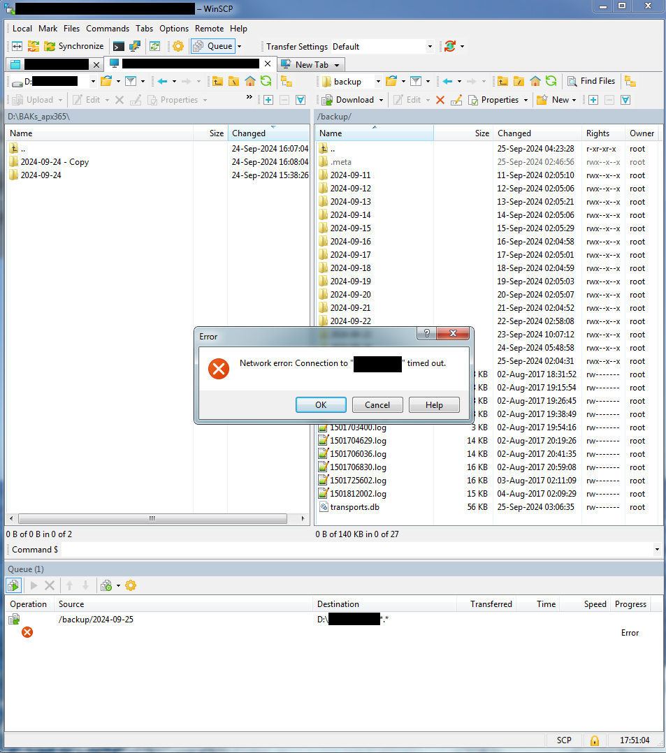 (on a connection that is alive and works, as one can go in and out of directories, reload, etc)