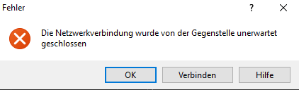 r Server hat die Netzwerkverbindung unerwartet geschlossen und Netzwerkfehler: Verbindung zu „…“