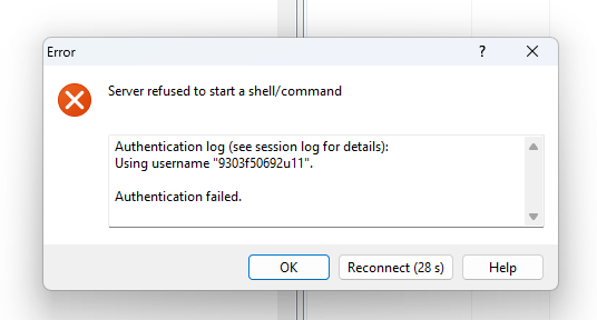 I am trying to login to server edi.multisped.de but am receiving error message 'server refused to start a shell/command. Authentication failed.'