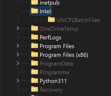 - The arrow (e.g., for the "Intel" folder) is missing when the folder is expanded