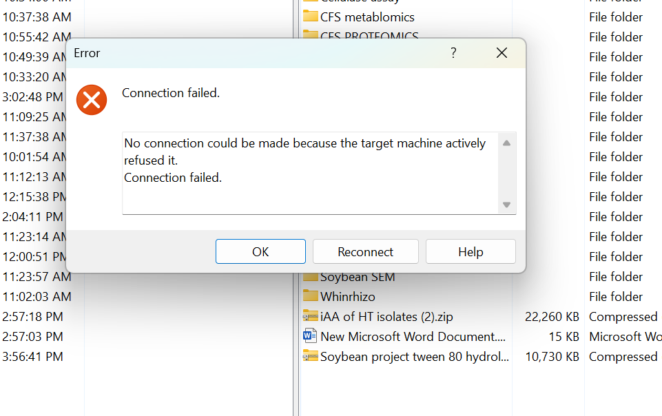 I am encountering a connection issue while attempting to upload my data to the MassIVE repository using WinSCP. Whenever I try to log in in WinSCP (FTP client) and connect to Massive. I get an error. Each time I try to connect, I receive the error message: