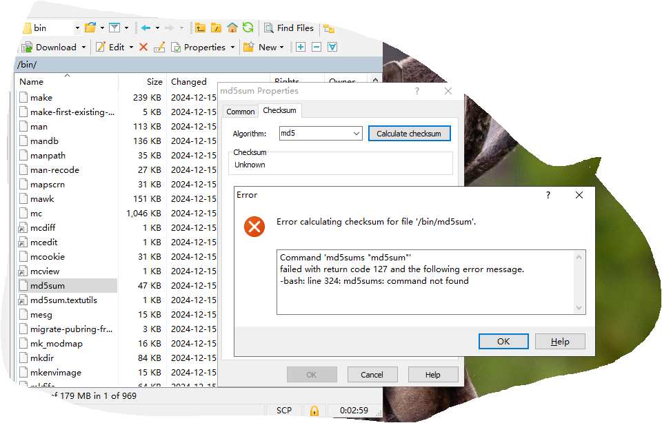 WinSCP "Verify Checksum" Feature Fails Due to Missing md5sum Command on Remote Server (Error 127)