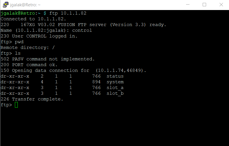 When I try to FTP from a Linux shell, it works fine. However, when I try to connect via WinSCP, it seems to have a problem with the unit's response to the